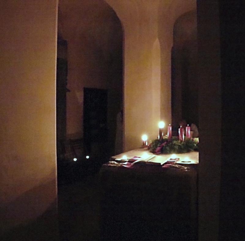 Ranní mše (roráty) v bývalém kostelíku sv. Jana Stětí v pondělí, 2.12.2013